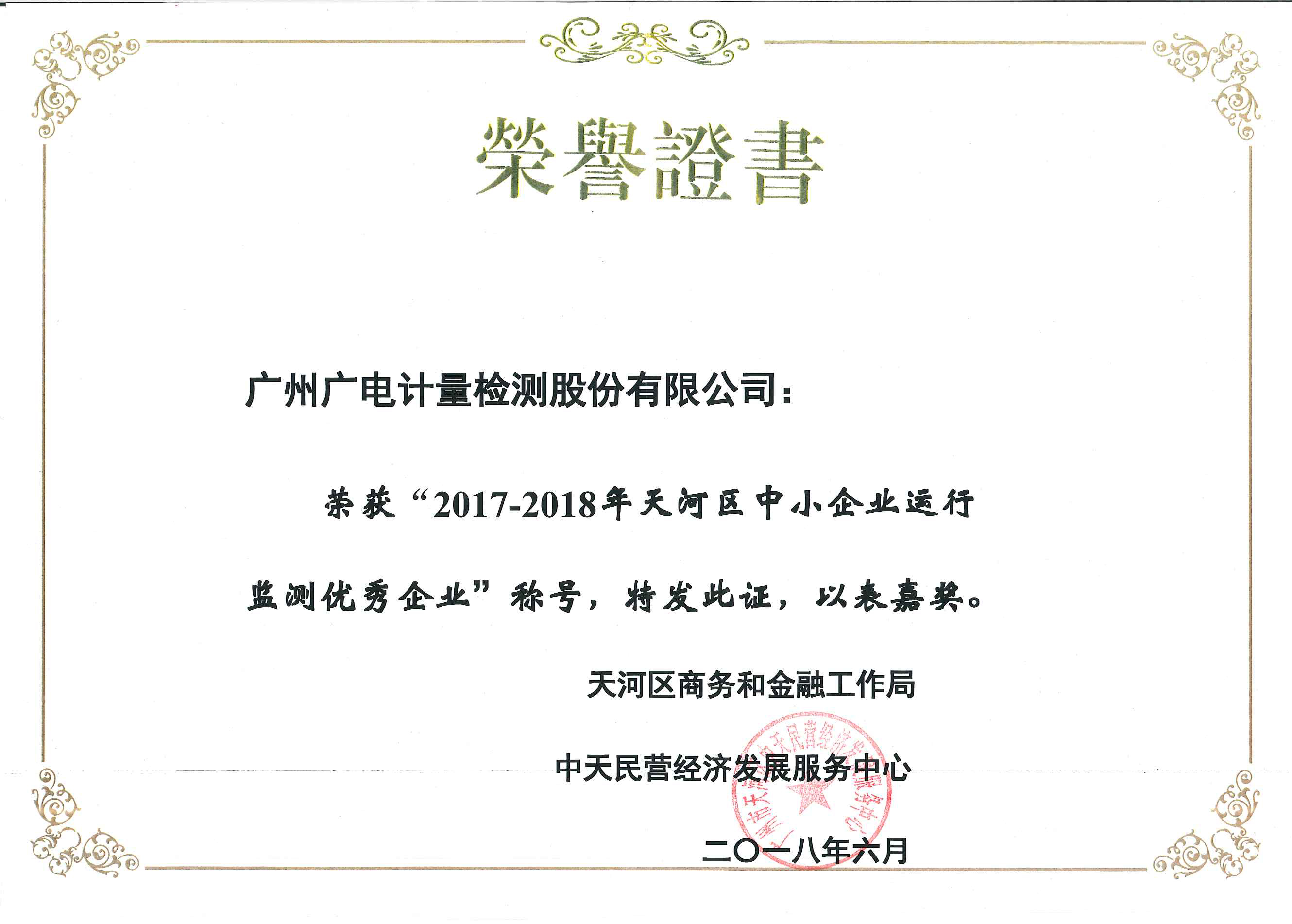 2017-2018年天河區(qū)中小企業(yè)運(yùn)行監(jiān)測優(yōu)秀企業(yè)