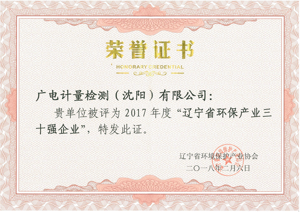 遼寧省環(huán)保產(chǎn)業(yè)三十強(qiáng)企業(yè)