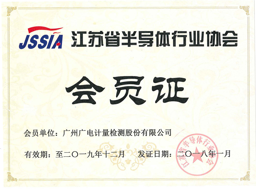 江蘇省半導(dǎo)體行業(yè)協(xié)會會員證