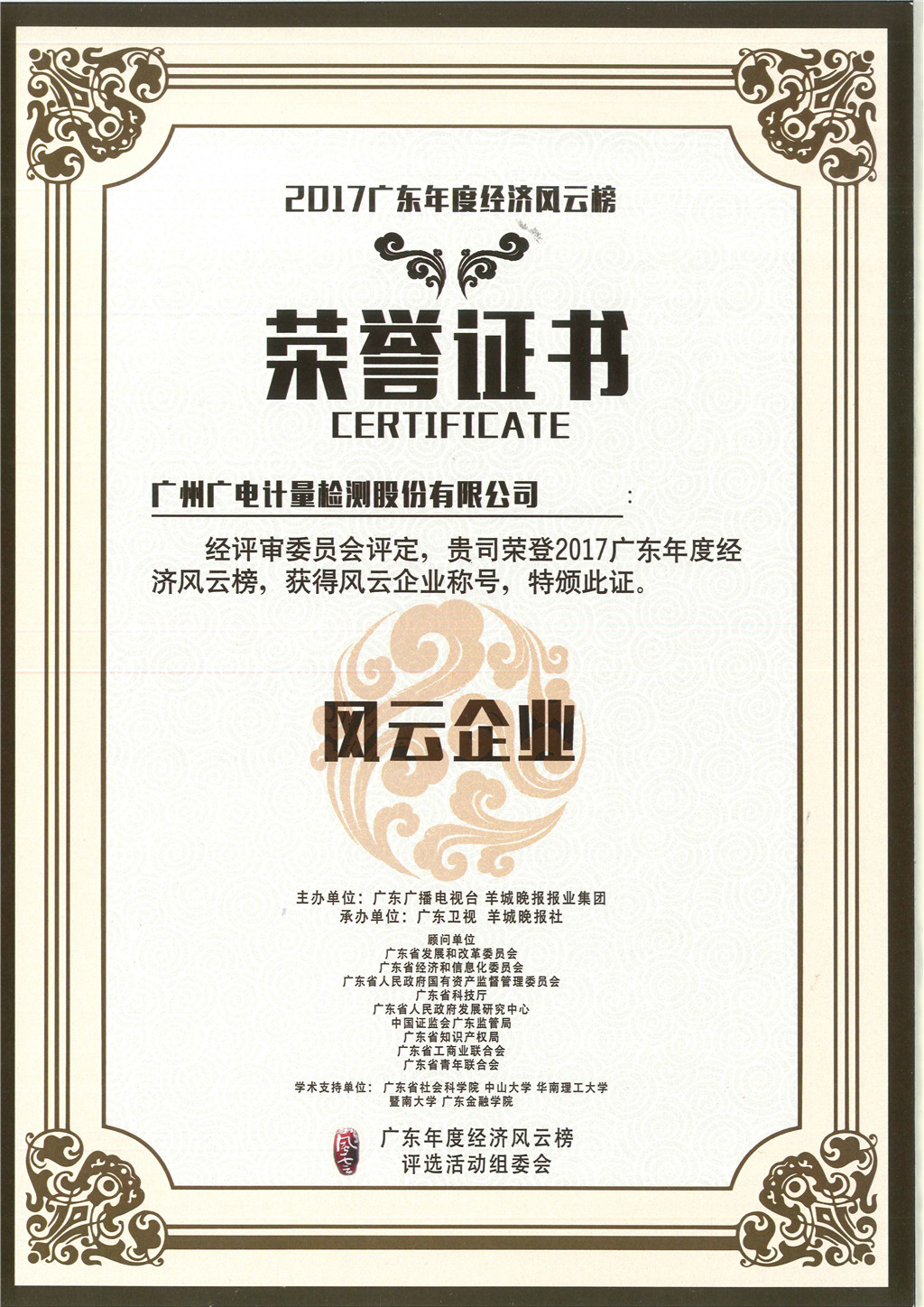 2017廣東年度經濟風云榜, 獲風云企業稱號