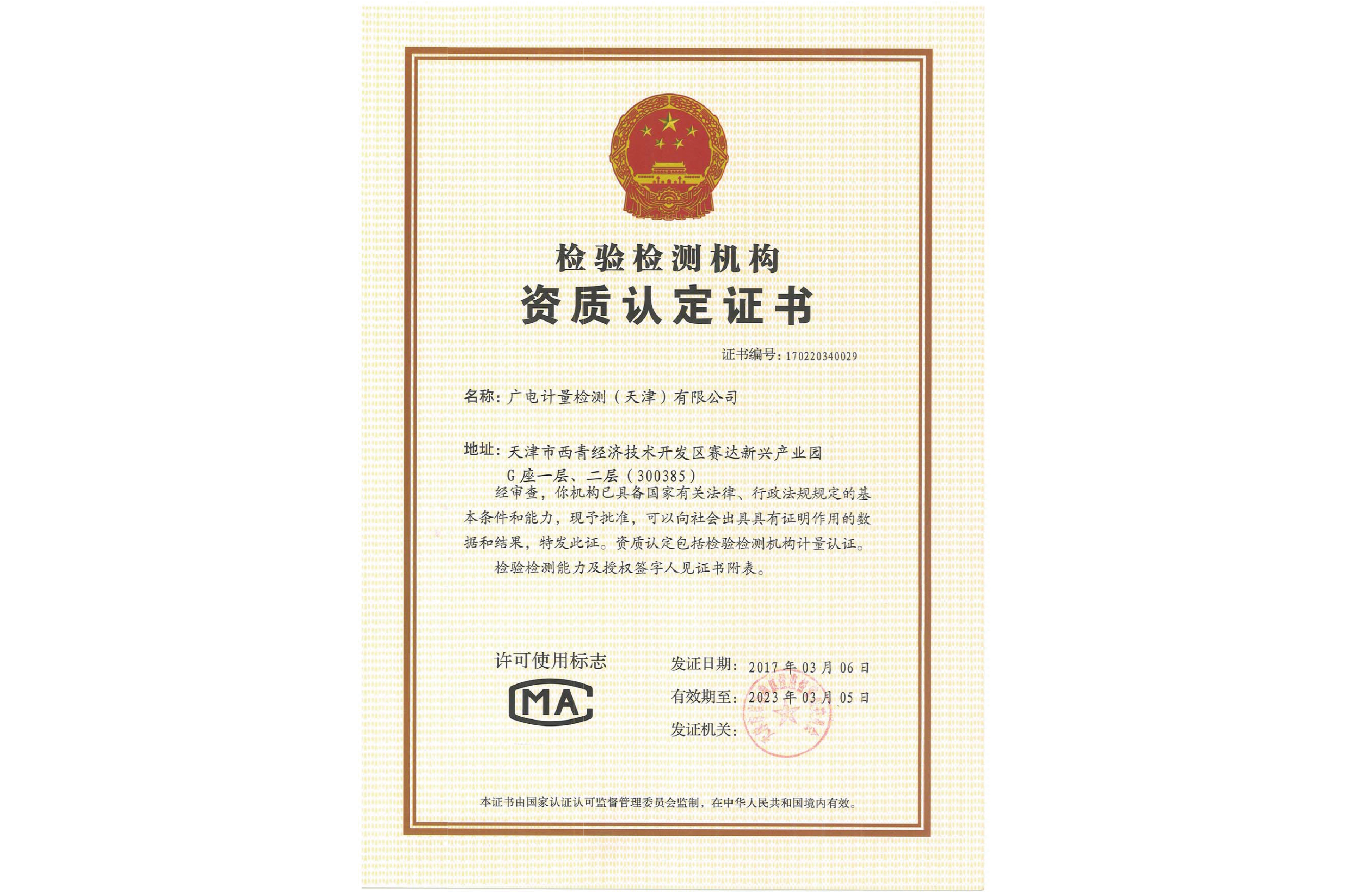檢驗檢測機構資質認定(CMA)證書-廣電計量(天津)有限公司