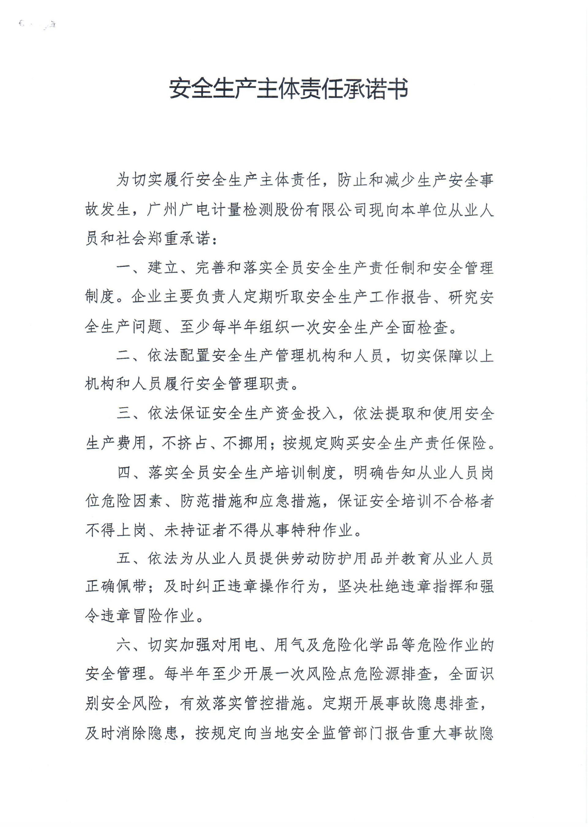 廣電計(jì)量安全生產(chǎn)主體責(zé)任承諾書(2018年)