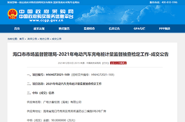 喜訊 | 海南廣電計(jì)量首獲充電樁計(jì)量監(jiān)督抽查檢定政府采購(gòu)項(xiàng)目