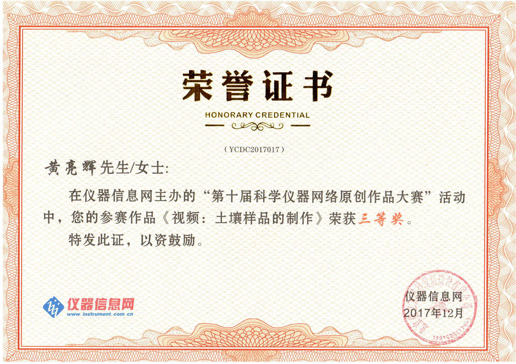 此外,廣電計(jì)量環(huán)保檢測(cè)技術(shù)工程師黃亮輝憑借原創(chuàng)視頻《土壤樣品制備》,在763篇作品中脫穎而出,榮獲科學(xué)儀器年度網(wǎng)絡(luò)原創(chuàng)作品大賽三等獎(jiǎng)。作品用清晰專(zhuān)業(yè)的視頻視角解讀了工作量巨大、實(shí)際操作困難的土壤樣品制備過(guò)程,其完整的內(nèi)容、專(zhuān)業(yè)的講解為行業(yè)人員提供了較高的參考價(jià)值。