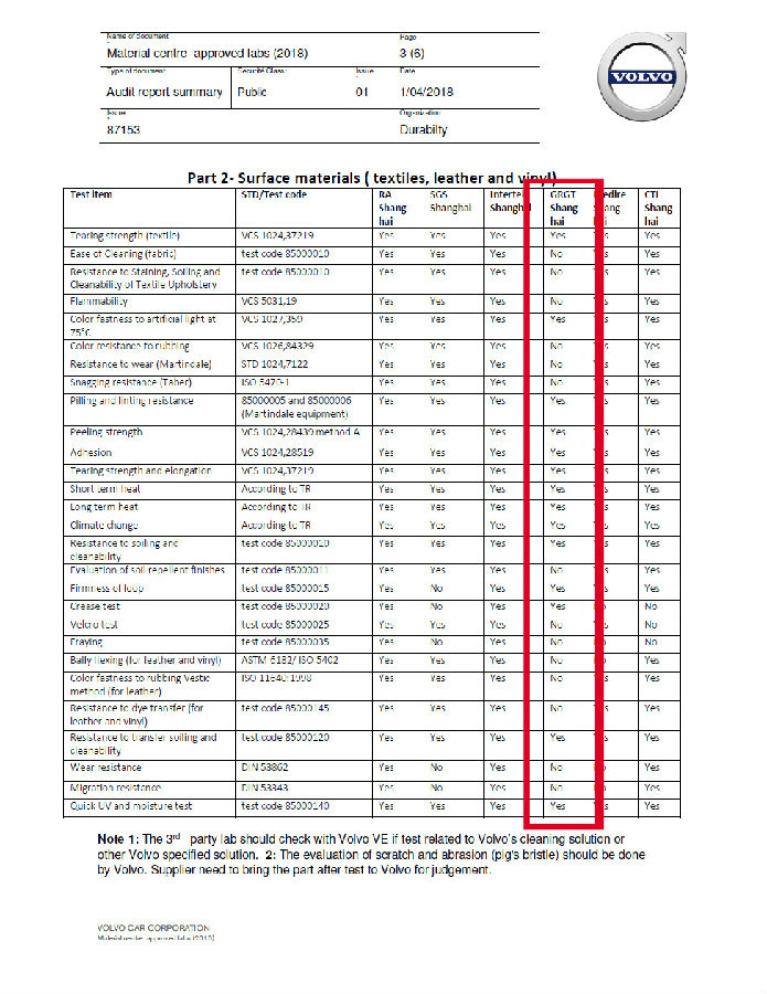 無錫子公司獲沃爾沃、眾泰汽車第三方實驗室能力認可