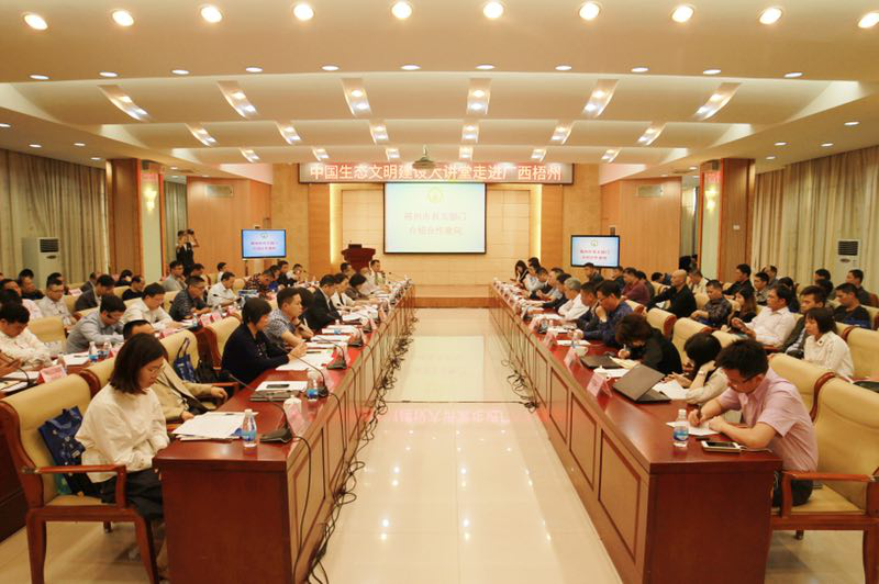 在大講堂走進(jìn)廣西活動(dòng)中,柳州市委常委、副市長(zhǎng)郝興國(guó),來(lái)賓市政府副秘書長(zhǎng)張桂延,梧州市委常委、組織部部長(zhǎng)張惠強(qiáng),賀州市人民政府副秘書長(zhǎng)陳灝等領(lǐng)導(dǎo)出席并致辭,對(duì)大講堂活動(dòng)表示了歡迎,希望通過(guò)大講堂送來(lái)先進(jìn)的技術(shù)、優(yōu)質(zhì)的資本和寶貴的合作機(jī)會(huì),為加快當(dāng)?shù)厣鷳B(tài)文明建設(shè)增添新動(dòng)能。大講堂邀請(qǐng)了原國(guó)務(wù)院三峽辦副主任、環(huán)境保護(hù)部黨組成員胡保林,中國(guó)生態(tài)文明研究與促進(jìn)會(huì)執(zhí)行副會(huì)長(zhǎng)李慶瑞,國(guó)務(wù)院發(fā)展研究中心資源與環(huán)境政策研究所副所長(zhǎng)常紀(jì)文,中國(guó)城市環(huán)境衛(wèi)生協(xié)會(huì)工業(yè)固廢與危廢處理專業(yè)委員會(huì)主任凌錦明,中國(guó)社科院城市發(fā)展與環(huán)境研究所環(huán)境經(jīng)濟(jì)與政策研究室主任李萌,廣西壯族自治區(qū)環(huán)保廳廳長(zhǎng)助理孔源等環(huán)保領(lǐng)域權(quán)威專家,為與會(huì)人員解讀生態(tài)文明建設(shè)領(lǐng)域相關(guān)政策、傳播嶄新理念,并提供具體技術(shù)指導(dǎo)。