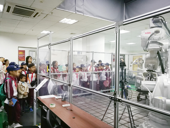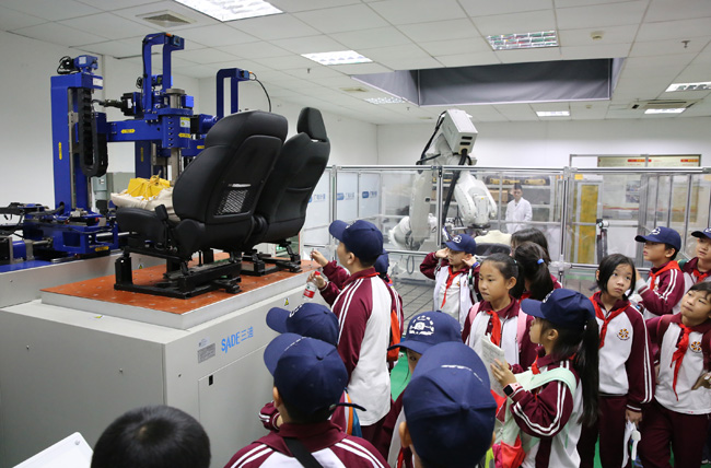“原來可以用機(jī)器人來做測(cè)試!”“真酷!”在觀看汽車座椅測(cè)試時(shí),孩子們對(duì)各種設(shè)備產(chǎn)生了濃厚的興趣,不時(shí)一邊提問一邊記錄。
