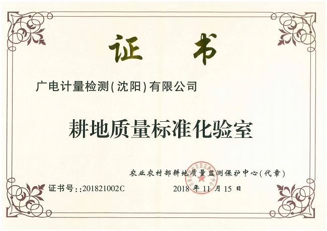 沈陽廣電計量獲“耕地質量標準化驗室”證書