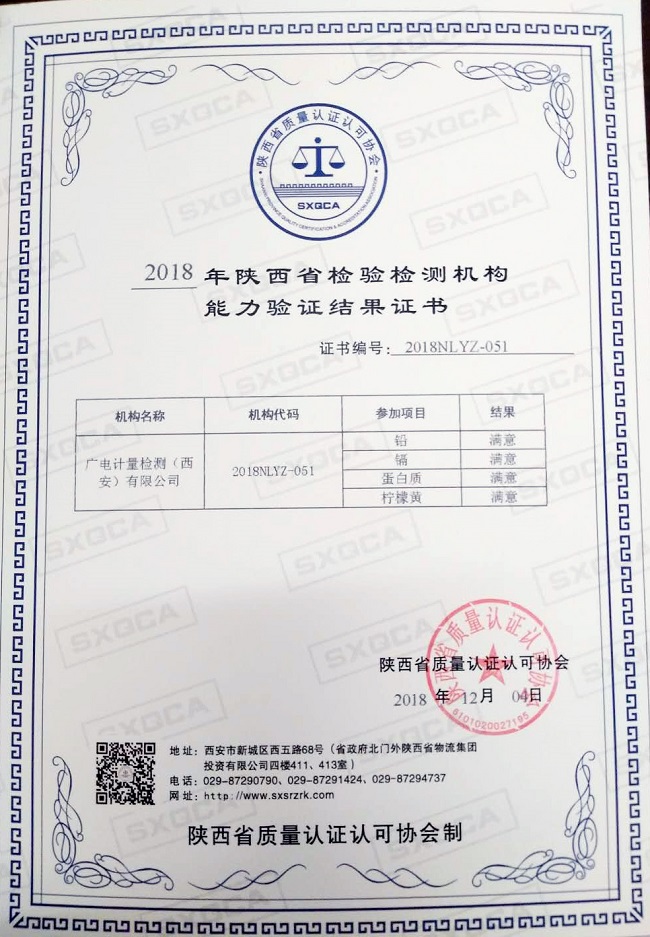 西安廣電計量獲頒2018年陜西省檢驗檢測機構能力驗證結果證書