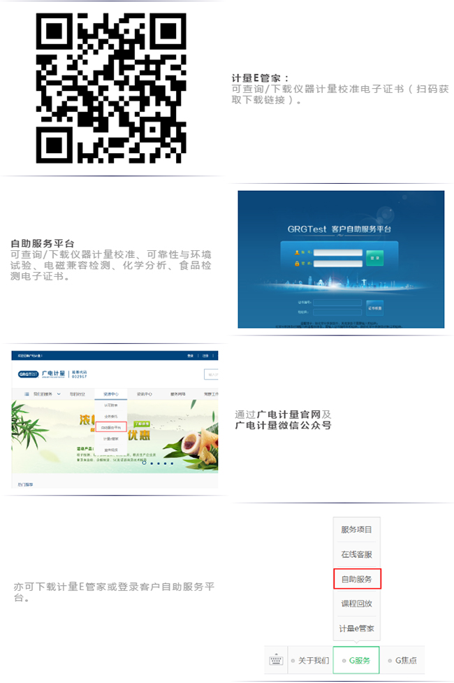 即日起廣電計量為客戶免費提供標準版的儀器設備管理軟件“計量E管家”,同時為客戶提供自助服務平臺(http://120.197.59.40:8086)、公司官網(m.highlander-toyota.cn)、微信公眾號等多種電子證書查詢、下載渠道。