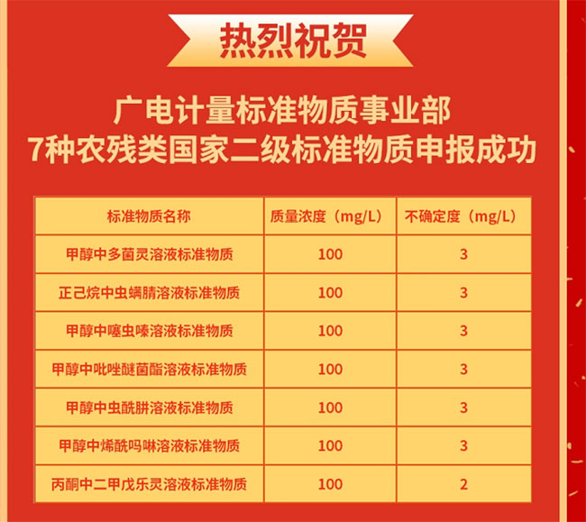 廣電計(jì)量標(biāo)準(zhǔn)物質(zhì)事業(yè)部自成立以來(lái),持續(xù)提升質(zhì)量控制與運(yùn)行管理水平,致力于標(biāo)準(zhǔn)物質(zhì)的研制及銷售工作,目前自主研發(fā)和代理銷售的標(biāo)準(zhǔn)物質(zhì)合計(jì)超10萬(wàn)種,涵蓋醫(yī)藥檢測(cè)、食品與農(nóng)產(chǎn)品檢測(cè)、環(huán)境檢測(cè)、工業(yè)品檢測(cè)、紡織品檢測(cè)等服務(wù)領(lǐng)域,助力科研院所、監(jiān)管部門、檢測(cè)機(jī)構(gòu)、生產(chǎn)企業(yè)等保存和傳遞特性量值,建立測(cè)量溯源性,保證測(cè)量結(jié)果的一致性、可比性,已成為政府監(jiān)管部門及企業(yè)的有力技術(shù)支撐力量。