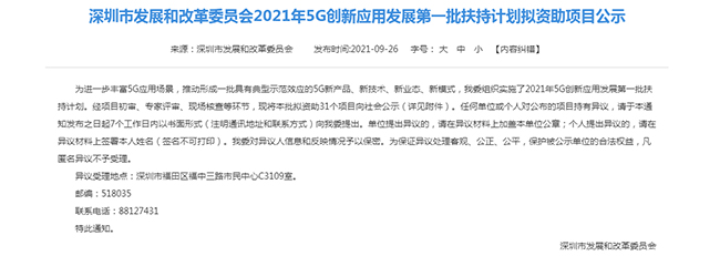 近日,深圳市發展和改革委員會發布2021年5G創新應用發展第一批扶持計劃擬資助項目公示,由廣電計量檢測(深圳)有限公司(簡稱:深圳廣電計量)承擔的“深圳5G應用測試驗證公共服務平臺組建項目”獲得立項支持。