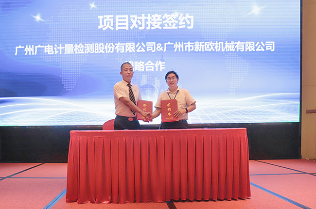 明志茂(左)代表廣電計量與新歐機械簽署戰(zhàn)略合作協(xié)議