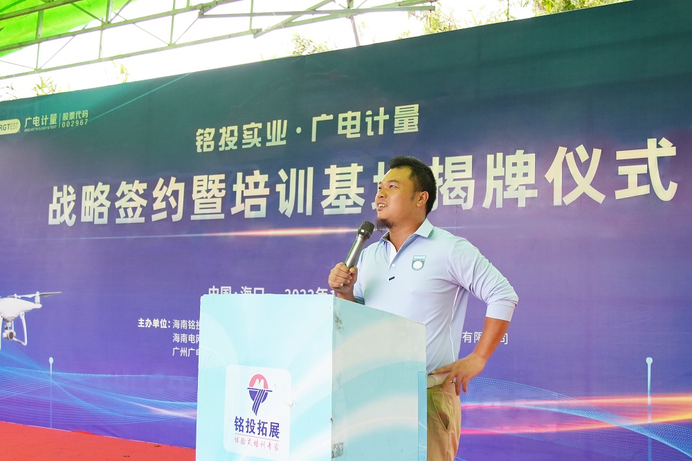 揭牌儀式后,廣電計量(海南)無人機培訓基地正式啟用,并舉行了“海南電網有限責任公司2022年多旋翼無人機AOPA取證培訓班項目”開班儀式,廣電計量無人機咨詢培訓中心副總監楊宇超做開班講話。據介紹,廣電計量響應國家號召,積極投身無人機行業的發展建設,結合公司自身優勢,構建了無人機培訓、無人機應用服務、無人機檢測及無人機適航取證咨詢三個方面能力,在過去的一年在全國為電力、環保、農林和無人機生產制造等行業,提供了優質的無人機服務,獲得了一致的認可與肯定。同時在今年的世界無人機大會上,受邀開設了無人機服務探索的分論壇,與行業專家共同探討無人機檢測及應用服務的規范化標準化管理;在今年的珠海航展上廣電計量開設展區,向各參展方展示了廣電計量在培訓、檢測等無人機服務方面優質服務能力,獲得了一致認可。