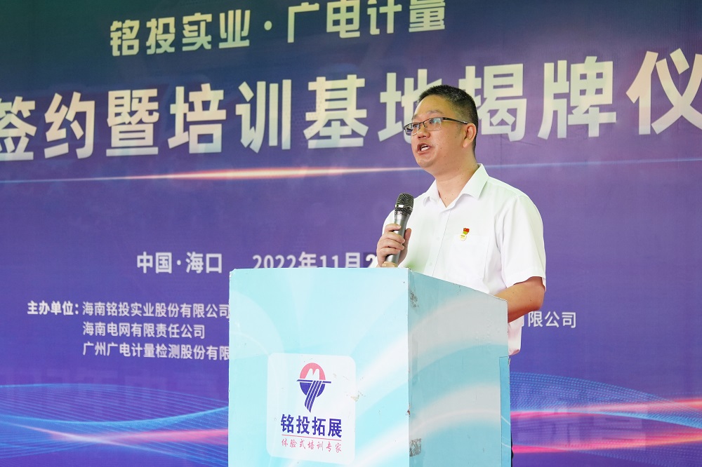 銘投實業董事長蔣德喜,銘投山莊總經理鄧一平,海南電網有限責任公司機巡作業中心經理楊杰,海南省質量協會秘書長陳燕,廣電計量檢測(海南)有限公司(簡稱海南廣電計量)董事長高歡迪,總經理鐘毅等出席儀式。