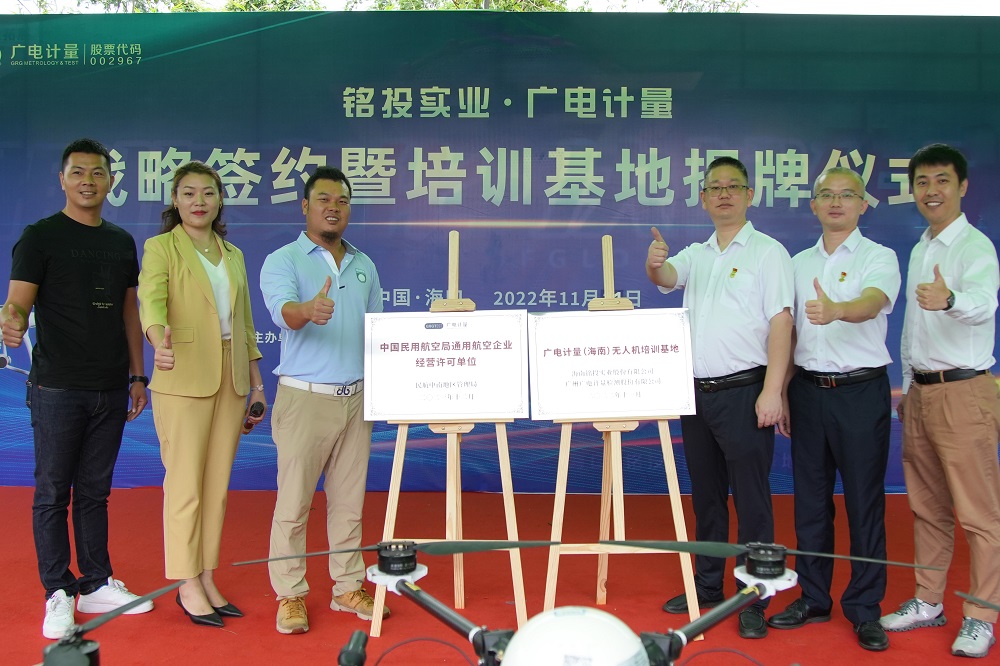 11月21日,廣州廣電計量檢測股份有限公司(簡稱廣電計量,股票代碼:002967)與海南銘投實業股份有限公司(簡稱銘投實業)簽署戰略合作協議,并舉行了“廣電計量(海南)無人機培訓基地揭牌儀式”。雙方將強強聯合、優勢互補,為海南省無人機產業培養高素質勞動者和技術技能型人才,共同助推海南省無人機通用航空事業高質量發展!