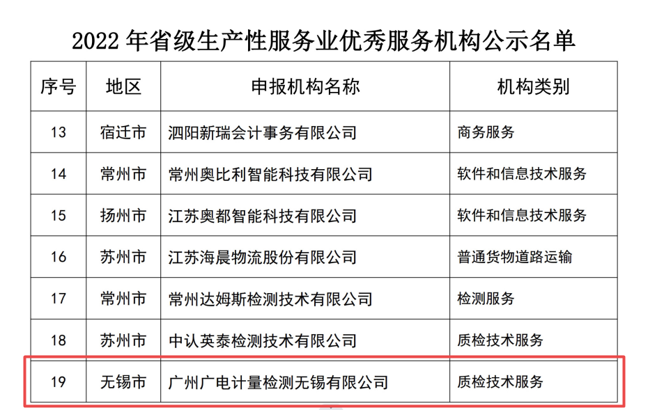 本次無錫廣電計量成功入圍省市級榮譽榜單,體現了公司專業化、多樣化、綜合性的資質能力建設和服務省內優勢產業發展的良好業績。無錫廣電計量將再接再厲,提升專業技術能力配合各級發改、工信、科技等部門開展各類面向中小企業的公益性服務活動同時在政府主管部門的政策指導下,進一步推進質檢技術優秀服務機構的建設發展,推廣應用優秀服務方案,提升服務制造業高質量發展的專業化水平,樹立先進制造業和現代服務業兩業深度融合新標桿!