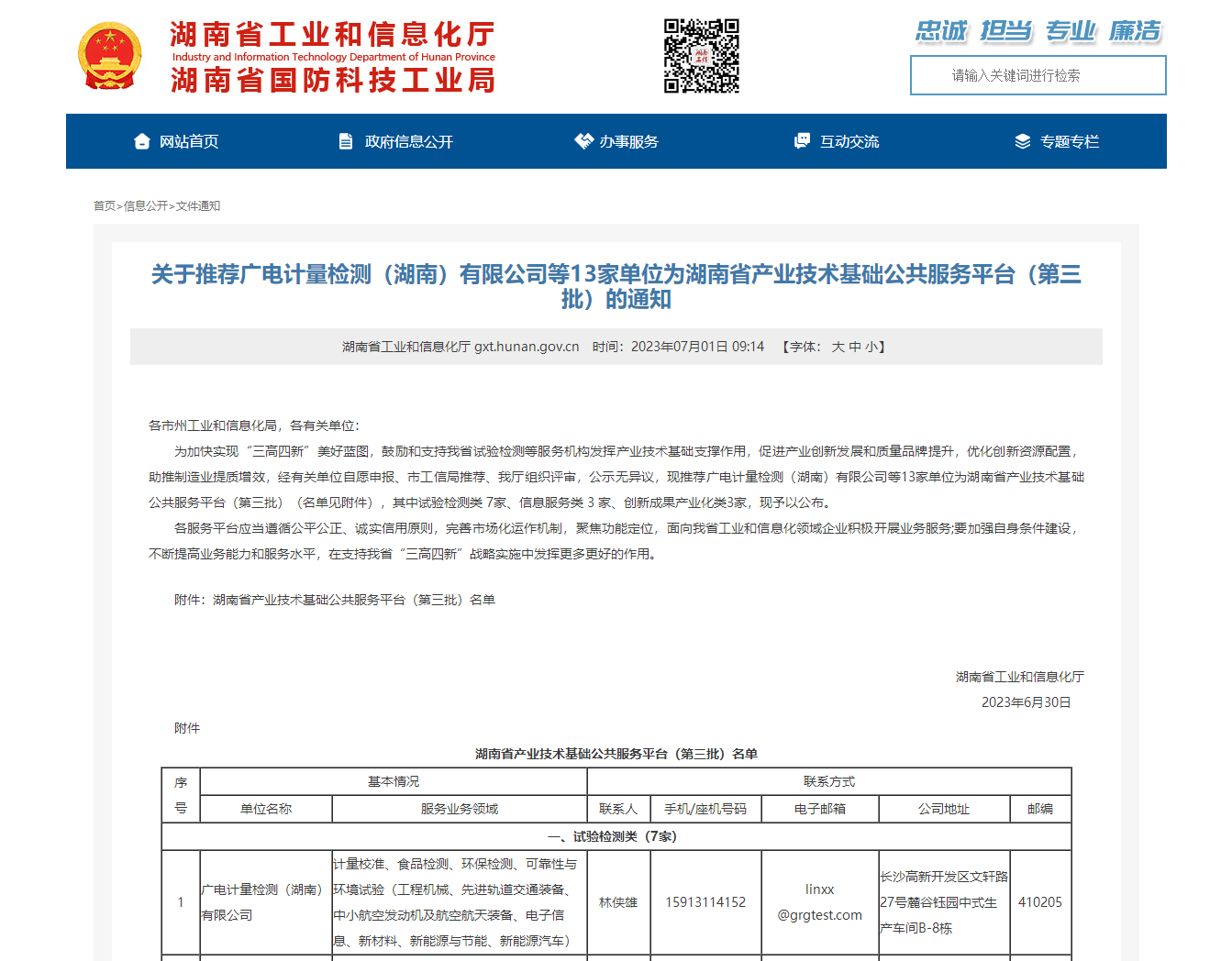 資訊中心公司新聞湖南廣電計量入選湖南省產業技術基礎公共服務平臺