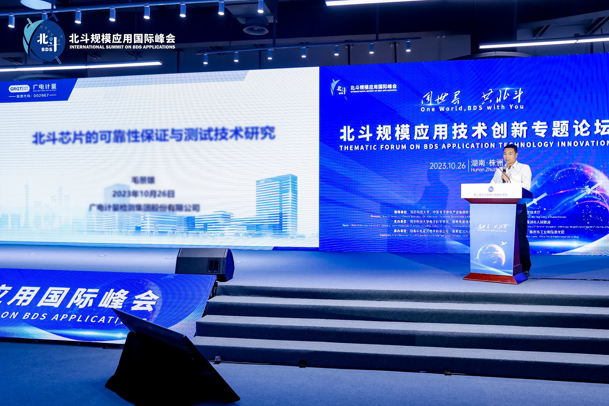 10月26日,第二屆北斗規模應用國際峰會在湖南省株洲市舉行。工業和信息化部黨組書記、部長金壯龍出席大會并致辭。湖南省委書記沈曉明,省委副書記、省長毛偉明出席大會。廣電計量受邀參會,集成電路測試與分析中心副總監毛景雄出席專題論壇并作《北斗芯片的可靠性保證與測試技術研究》主題報告。