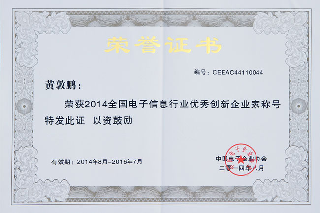 資訊中心公司新聞GRGT黃敦鵬總經(jīng)理榮獲“2014全國(guó)電子信息行業(yè)優(yōu)秀創(chuàng)新企業(yè)家”稱號(hào)