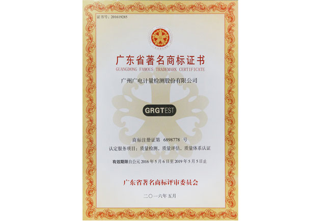 繼廣電計量核心商標“GRGTEST”于2015年12月31日被認定為廣州市著名商標后,3月28日,經(jīng)廣東省著名商標評審委員會統(tǒng)一評審,“GRGTEST”又被認定為廣東省著名商標。此次認定成功意義重大,既彰顯了公司的品牌影響力,又將公司的品牌公信力建設工作推上了新臺階。