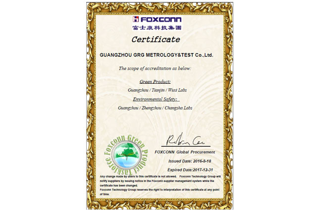 廣電計量成為富士康2016-2017年度推薦認可的第三方檢測機構