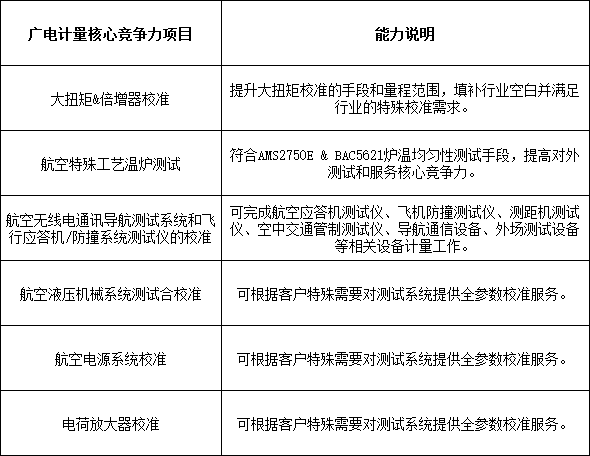 1. 廣電計量在材料試驗、熱處理、航電系統(tǒng)等領域建立符合NADCAP體系要求計量能力;