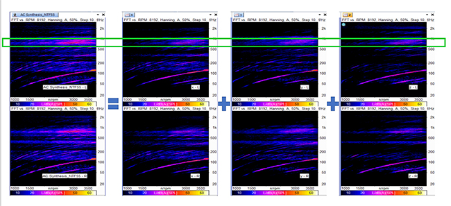 答:例如某車型在加速過程中,車內有共振現象,特征頻率中心頻點750Hz。通過傳遞路徑分析,該問題由固定在前圍板上的空調管路引起,從下圖可以看出空調管路的三個方向都有貢獻。