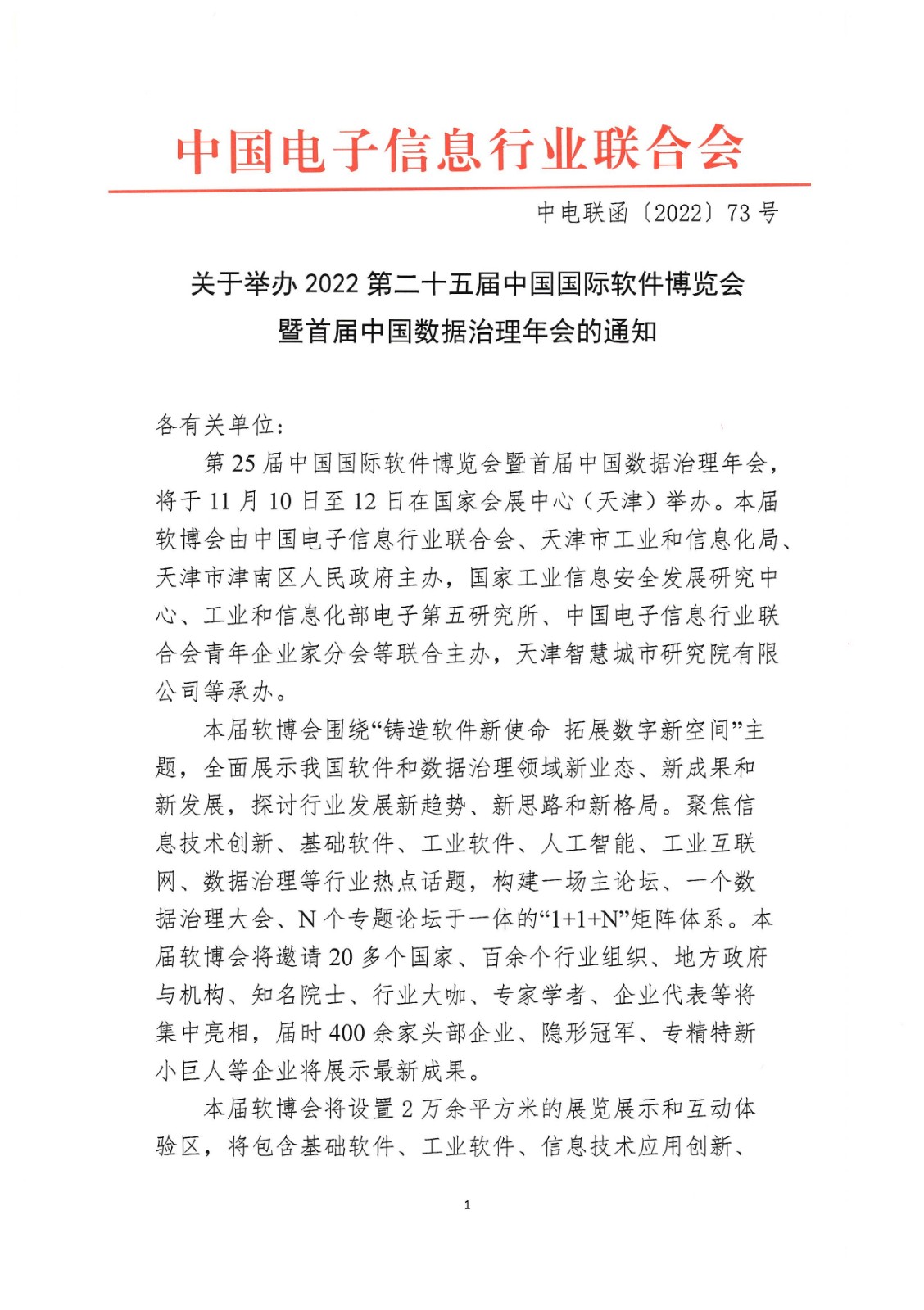 附件:關(guān)于舉辦2022第25屆軟博會暨首屆中國數(shù)據(jù)治理年會的通知