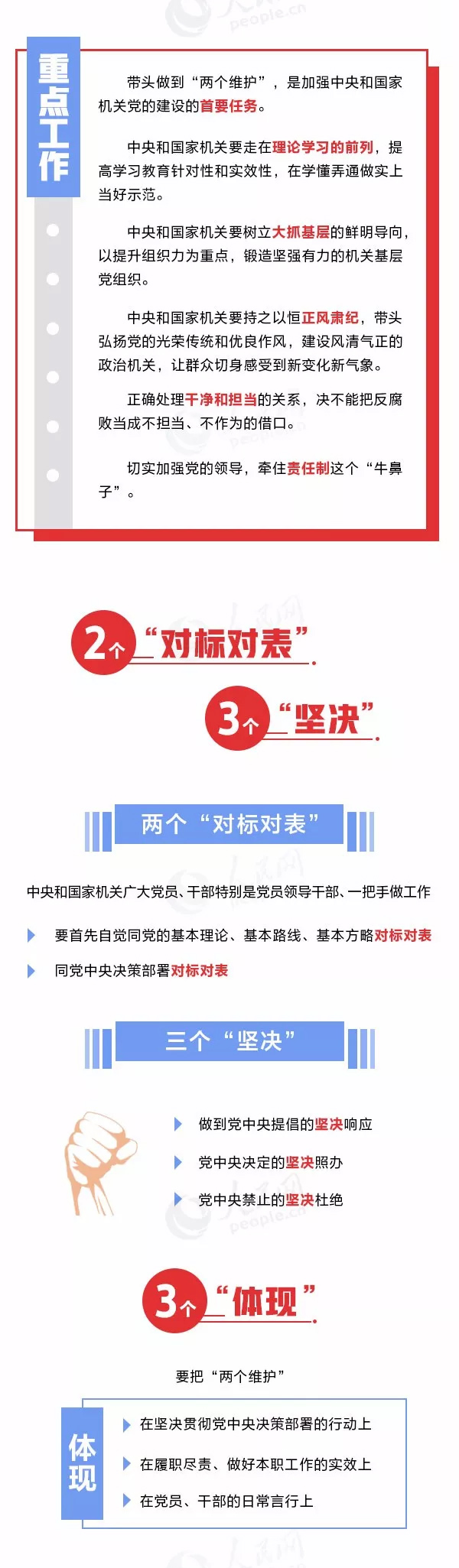 通知要求,各級黨組織要自覺對標習(xí)近平總書記重要指示精神,找差距、查問題、補短板,深化檢視剖析工作。中央和國家機關(guān)、省級機關(guān)和副省級城市機關(guān)要重點查找在做到“兩個維護”方面的差距,看是否做到黨中央提倡的堅決響應(yīng)、黨中央決定的堅決照辦、黨中央禁止的堅決杜絕;查找在加強理論學(xué)習(xí)方面的差距,看是否在真學(xué)真懂真信真用習(xí)近平新時代中國特色社會主義思想上下功夫;查找在夯實基層基礎(chǔ)方面的差距,看是否存在機關(guān)黨建“燈下黑”的問題;查找在正風(fēng)肅紀方面的差距,看是否堅決克服形式主義、官僚主義,是否堅持嚴字當頭,加強對黨員、干部全方位的管理監(jiān)督,一體推進不敢腐、不能腐、不想腐;查找在落實主體責(zé)任方面的差距,看是否牽住責(zé)任制這個“牛鼻子”,做到明責(zé)、履責(zé)、盡責(zé)。