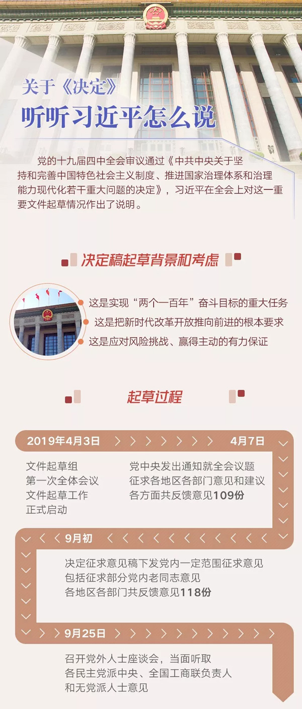 受中央政治局委托,我就《中共中央關(guān)于堅持和完善中國特色社會主義制度、推進國家治理體系和治理能力現(xiàn)代化若干重大問題的決定》起草情況向全會作說明。