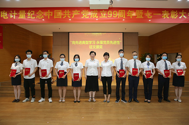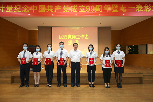 會上,黃敦鵬代表公司黨委班子向全體黨員致以節日的問候,向受表彰的先進集體和個人以及新發展的15名中共預備黨員表示熱烈地祝賀。黃敦鵬強調,本次大會既是一次慶祝黨的99歲生日的紀念會,也是凝聚公司發展力量的動員會并對全體黨員提出了三點期望:一是銘記黨的奮斗歷程,弘揚艱苦奮斗精神,彰顯特殊時期的使命擔當;二是學習追趕先進典型,爭當服務大局先鋒,彰顯黨組織和黨員的先進性;三是重視思想政治教育,凝聚新的發展力量,彰顯“支部建在連上”的政治優勢。黃敦鵬號召全體黨員要對照先進典型,比學趕超向前,為全力沖刺廣電計量“十三五”目標、開啟“十四五”規劃、實現新的跨越式發展作出新的更大的貢獻!