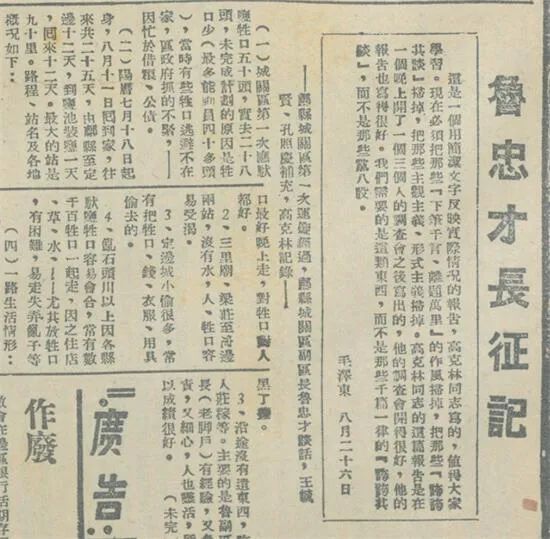 毛澤東看過這篇內(nèi)容簡(jiǎn)潔、語言樸實(shí)、條理清晰的調(diào)查報(bào)告后倍加推崇,并特地寫了一段按語: